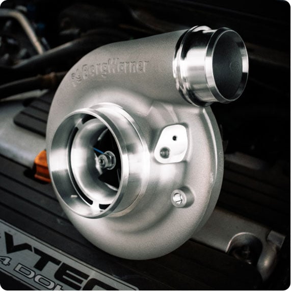 EFR turbochargers are BorgWarner’s most advanced performance turbo series. Each ball-bearing turbo is equipped with Gamma-Ti turbine wheel technology, a lightweight material with 50% less turbine inertia when compared to heavier Inconel-based turbos. The result is that the boost comes on 1,000 to 2,000 RPM faster! This is why EFR is winning events at Formula Drift, Pikes Peak, Global Time Attack, Autocross, INDYCAR Series, IMSA, Drag Race, Baja, Rally Cross, Road Course and more! EFR offers power ratings ranging from 225 HP all the way up to 1,100 HP per turbo. All INDYCAR engines are proudly equipped with twin EFR 7163s, which utilize mixed-flow turbine wheel technology!