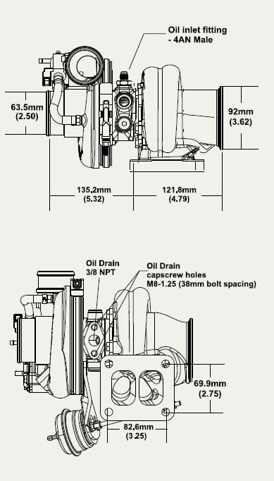 - T25 Single Scroll = 11631008000 (0.80 A/R) internal wastegate